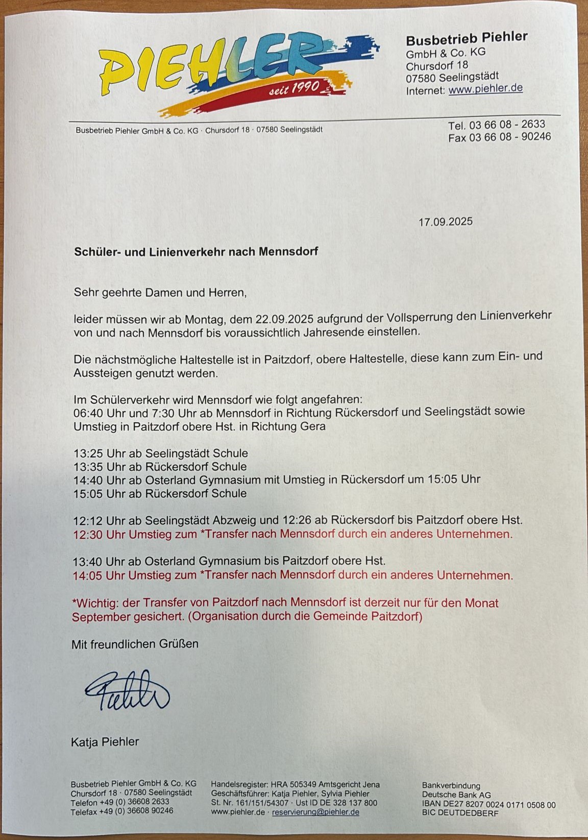 ==> Schulbusverkehr von/nach Mennsdorf ab 22.09.2025 (Stand 22.09.2025)